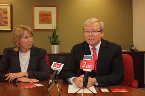 中新網(wǎng)8月19日電 據(jù)澳洲新快網(wǎng)報道,為爭取Bennelong選區(qū)華人支持,陸克文(Kevin Rudd)、麥嬌(Maxine McKew)8月18日下午在聯(lián)邦政府大廈會晤華文傳媒,支持被他成為20多年好友的麥嬌,表示如果工黨贏得大選他將在聯(lián)邦政府內(nèi)任職。