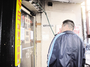 報道指出,在7日執(zhí)法行動中有一名石姓女子被捕的中日職業(yè)介紹所仍繼續(xù)關門,8日一早門上就張貼出中英文告示,明確告訴找工者必須有工作許可證。