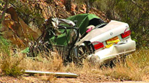 15日早上10時(shí)50分,一輛銀色本田雅閣,在YASS以北約20公里的許膜公路(HUME HIGHWAY)向北行駛,不知何故,突然鏟過南北行車線中間的分隔處,駛?cè)敕捶较蛐旭偟哪闲芯,與迎面而來一輛兩卡的大貨車相撞,大貨車司機(jī)扭轪閃避,已來不及。本田車上四名20多歲男子當(dāng)場(chǎng)喪生,而大貨車因?yàn)殚W避而鏟向路旁山邊,59歲司機(jī)也受輕傷,并且嚇破膽,15日已出院。