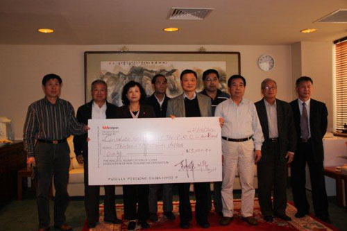 中新網(wǎng)4月23日電 據(jù)新西蘭中華新聞網(wǎng)消息,新西蘭中國和平統(tǒng)一促進(jìn)會(huì)與新西蘭中國團(tuán)體聯(lián)合會(huì)4月22日將一張13000紐幣的支票遞交到奧克蘭總領(lǐng)館廖菊華總領(lǐng)事手中,來表達(dá)新西蘭華人華僑對(duì)青海玉樹地震災(zāi)區(qū)同胞的濃濃情意。