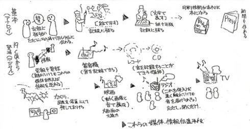 在日本的女子大學講《媒體藝術論》,去年是春季,今年是秋季。不論季節(jié)如何,課堂講義一直堅持手繪,而且也要求所有的學生提交報告時也必須手寫,用電腦打出來的文稿一律不受理!
