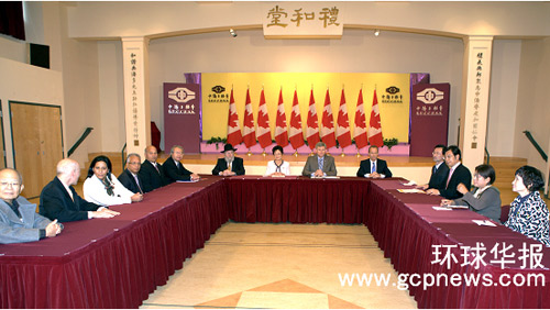 中新網(wǎng)10月14日電 據(jù)加拿大《環(huán)球華報(bào)》報(bào)道,加拿大總理哈珀(Stephen Harper)當(dāng)?shù)貢r(shí)間10月13日在聯(lián)邦國(guó)際貿(mào)易部長(zhǎng)戴國(guó)衛(wèi)(Stockwell Day)、華裔國(guó)會(huì)議員、多元文化國(guó)會(huì)秘書黃陳小萍的陪同下造訪總部位于溫哥華中僑互助會(huì),并與十多位少數(shù)族裔社區(qū)領(lǐng)袖舉行圓桌會(huì)議,聽取社區(qū)意見。