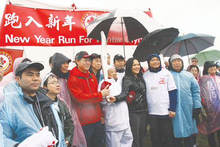 中新網(wǎng)1月4日電 據(jù)加拿大《明報(bào)》報(bào)道,加拿大近千名華人與三級(jí)政府代表,1日冒著大風(fēng)大雨,參加“跑入新年迎接冬奧”活動(dòng),展示華人小區(qū)對(duì)溫哥華冬季奧運(yùn)會(huì)的支持。