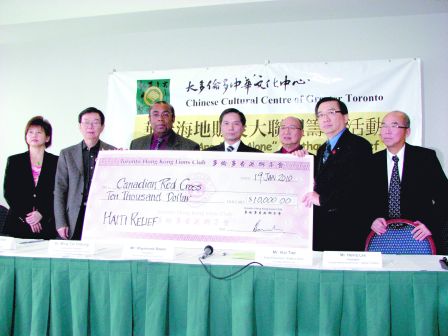 在當日記者會上,多個機構以不同方式為海地大地震賑災:湛山精舍捐款1.5萬元﹑多倫多香港獅子會捐款1萬元﹑多倫多雅賢獅子會5000元﹑多倫多柏麗獅子會5000元等。而也有團體則以攤位義賣物品﹑發(fā)動會員捐獻……務求盡一分力﹑發(fā)一分光,幫助海地災民早日恢復正常生活。