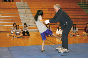 記者發(fā)現(xiàn),幾十名華裔女生大都比較害羞,吶喊聲音很小,動(dòng)作也只是點(diǎn)到為止。相比之下,西裔女生則很認(rèn)真,而且敢于上場(chǎng)與“色狼”對(duì)練。華裔11年級(jí)女生陳青青表示,學(xué)了自衛(wèi)術(shù)之后,覺(jué)得很有用,起碼在遇到被色狼攻擊的時(shí)候不會(huì)那么害怕,知道該怎樣應(yīng)付,如何脫身。