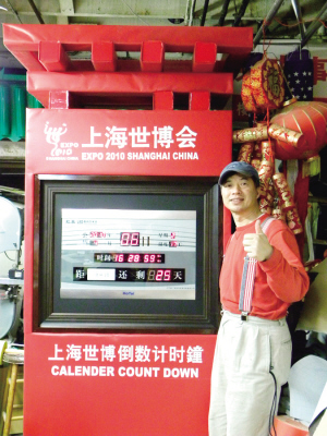 黃漢龍介紹他制作的上海世博會(huì)倒計(jì)時(shí)鐘,將擺放在舊金山灣區(qū)佛利蒙永和超市前,讓灣區(qū)僑胞也能一起為上海世博倒計(jì)時(shí)并迎接上海世博會(huì)的到來。