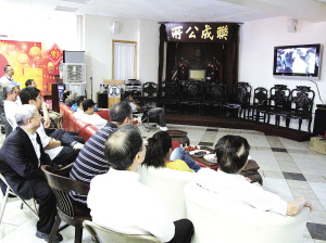 中新網(wǎng)6月17日電 據(jù)美國《僑報(bào)》報(bào)道,南非世界杯舉世矚目的桑巴軍團(tuán)巴西隊(duì)15日登場,對(duì)陣神秘之師朝鮮隊(duì)。紐約華埠有半公開轉(zhuǎn)播賽事的地方均擠滿了球迷觀戰(zhàn)。美東聯(lián)成公所的屏幕前坐或站滿了球迷,連主席黃達(dá)良、顧問趙文笙、92歲的秘書長黃玉振等,也暫時(shí)放下手中工作,看看球再說。