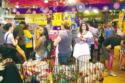 西裔諾加勒斯一家祖孫三代到湖人隊用品店選購各自中意的服裝、鞋帽。他表示,一直是湖人隊忠實球迷,經(jīng)常購買湖人隊紀念品,所有紀念品加起來可辦一個收藏展。