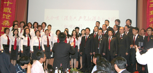 聯(lián)歡會(huì)上,米蘭華僑華人婦女會(huì)、米蘭第一中文學(xué)校、米蘭愛琴海樂隊(duì)及留學(xué)生代表等表演了歌舞、器樂、書法等節(jié)目,用各種形式表達(dá)對(duì)祖國60華誕的衷心祝賀!最后,米蘭華人合唱團(tuán)合唱《沒有共產(chǎn)黨就沒有新中國》和《歌唱祖國》,全體來賓與合唱團(tuán)一同高歌,唱出了全體旅意華人的心聲。