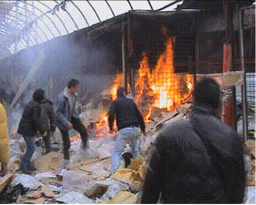 當(dāng)?shù)貢r間中午11時半,在羅馬尼亞稅務(wù)總局警察對尼羅市場的玩具區(qū)進(jìn)行封鎖大約10分鐘后,挨著玩具區(qū)的垃圾堆突然起火,火勢迅速竄升至4米左右。100余名市場華商及各國商人拿著滅火器、水盆等紛紛趕來救火,火被迅速撲滅。這時候現(xiàn)場開始混亂,有沖動的商戶向警察扔紙箱,警察也拿著警棍驅(qū)趕市場商戶,沒料想未被完全撲滅的余火忽又燃燒起來,火勢開始蔓延,現(xiàn)場人們重又投入救火之中。中國駐羅使館有關(guān)人員及市場維權(quán)委員會負(fù)責(zé)人潘繼東等人趕到調(diào)解,混亂稍稍平息。據(jù)知,火災(zāi)沒有造成重大損失。