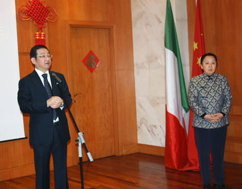 招待會由何風云副總領事主持,張利民總領事首先向來賓和旅意廣大僑胞致以新春的祝福。張利民總領事說,2009年,中國成功舉辦新中國60周年慶典,為全球抵御國際金融危機做出了積極的貢獻,中國在與世界各國的交流中取得了豐碩的成果。特別是中國國家領導人吳邦國委員長、胡錦濤主席相繼訪意,把兩國關系推向了新的高潮。隨著2010年中意文化年的舉辦,相信中意兩國關系一定會跨入一個新的歷史階段。