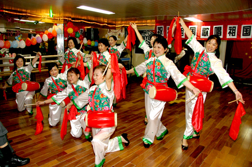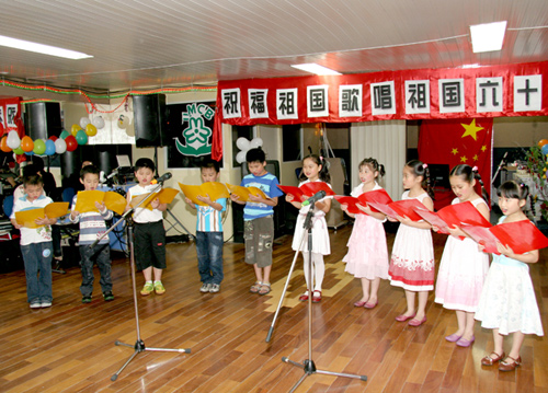 當(dāng)天的聯(lián)歡會上,婦女會的姐妹們表演了新創(chuàng)作排練的腰鼓舞蹈,育才學(xué)園小朋友們表演了集體詩朗誦,趙永平、惠青等朗誦了《祖國我愛你》長詩。在王燕文小姐領(lǐng)唱下,全體與會人員還起立演唱了歌唱祖國的大合唱。隨后,趙永平會長、孫總領(lǐng)事以及與共和國同齡的姐妹們一起切開了慶祝祖國六十周年的生日蛋糕。