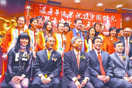 500多名僑界代表當(dāng)日共同守候功臣們的到來(lái),奪金的花樣滑冰雙人滑選手申雪和趙宏博剛到場(chǎng),便受到英雄和明星式的待遇,從進(jìn)場(chǎng)到坐下便好像“手握不完、相影不完、名簽不完!彪S后,王冰玉、周妍、岳清爽和柳蔭這冰壺4姐妹入場(chǎng),又引發(fā)新一輪高潮,場(chǎng)面極為熱鬧,閃光燈亮個(gè)不停。