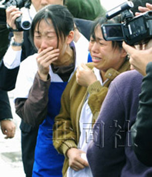 宋方的父親9日抵達(dá)森町認(rèn)領(lǐng)女兒尸體。靈柩車(chē)途經(jīng)宋方生前所在工廠時(shí),同事們淚流滿面前來(lái)送行。