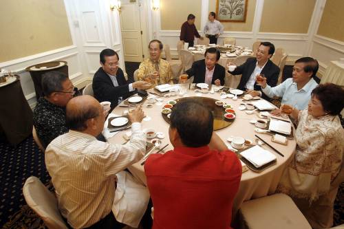 馬華中央領(lǐng)導(dǎo)層16日晚于吉隆坡麗苑設(shè)宴邀華團(tuán)及華商共赴晚宴,期間只聊華社課題卻言止于政治。