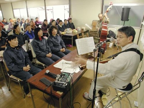 “日中之歌交流會(huì)”舉辦當(dāng)天,井村行夫演奏吉他用中文為中國(guó)研修生唱出了《大海啊,故鄉(xiāng)》,一些思念故鄉(xiāng)的中國(guó)研修生當(dāng)場(chǎng)流下了熱淚。隨后,中國(guó)研修生們集體用日語(yǔ)唱出了《四季歌》,把這次的交流推向高潮。(仇棣)