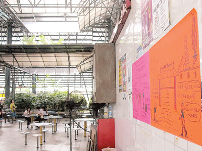張貼在飲食中心周?chē)挠嘘P(guān)漫畫(huà)大字報(bào)顏色非常鮮艷,內(nèi)容都是以“馬華武林大會(huì)”、“支持特大”、“翁大使要第一劍”、“中委會(huì)不支持特大”、及“雙龍出海,混云卷風(fēng),龍虎斗,必有一傷”,及勸人退一步海闊天空等字眼。