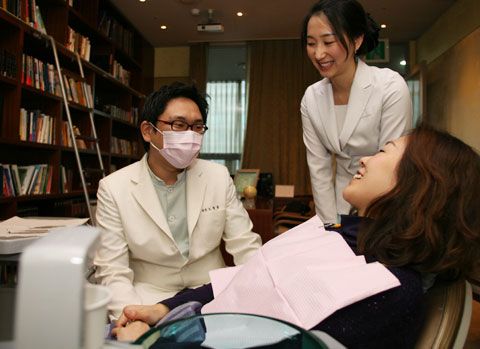 中新網(wǎng)1月7日電 據(jù)韓國《朝鮮日報》報道,5日,韓國首爾江南區(qū)清潭洞的牙科11層!鞍 珱Q定治療了嗎?牙的哪個部分不合您的心意?”院長No Jeong-jun向身穿紫色針織T恤躺在診療臺上的日本人患者問道。站在旁邊的院方咨詢服務(wù)師當(dāng)即做了翻譯。患者說“我的牙歪歪斜斜地太不整齊了”。她是3日為接受牙齒貼瓷整形治療以4天日程訪問韓國的日本主婦崎本。