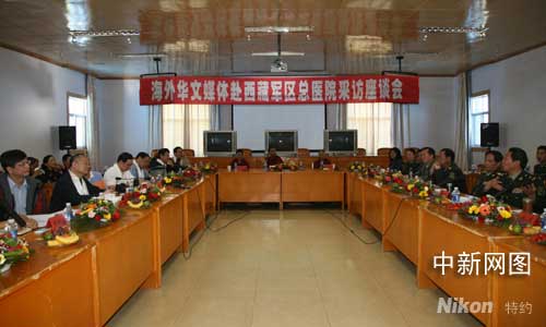 中新網(wǎng)拉薩7月9日電(記者 柳俊武)中國(guó)道德模范李素芝將軍領(lǐng)導(dǎo)的西藏軍區(qū)總醫(yī)院,每年拿出三千多萬元人民幣,為少數(shù)民族困難民眾開展免費(fèi)醫(yī)療,被譽(yù)為“雪域高原上的諾亞方舟”。國(guó)務(wù)院僑辦副主任趙陽、中新社總編輯劉北憲率領(lǐng)的十二家海外華文媒體老總訪藏團(tuán),八日拜會(huì)李素芝將軍并在該院與部分醫(yī)護(hù)人員和受惠民眾代表座談,李素芝及其醫(yī)院大愛無疆的民族手足情懷感動(dòng)了各族民眾,也感動(dòng)了與會(huì)華文媒體。