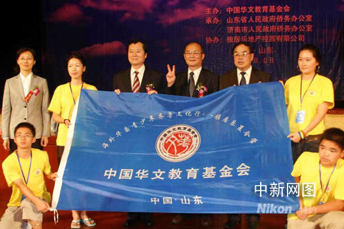 專程前來參加開營式的國務(wù)院僑辦副主任趙陽介紹說,本次夏令營是中國華文教育基金會成立以來,舉行的規(guī)模最大、營員地域范圍最廣、人數(shù)最多的一次。本次夏令營涵蓋了來自五大洲20多個(gè)國家和地區(qū)的200多名營員,來自港澳臺地區(qū)的大學(xué)生,以及一批特殊的營員——來自四川地震災(zāi)區(qū)的學(xué)生們。他們將在山東共同度過10余天的集體生活。趙陽希望大家在盡可能多的了解齊魯文化的同時(shí),四川的學(xué)生們能在營中感受到來自世界各地華裔青少年的關(guān)心和熱情;同時(shí),也希望華裔青少年們能體會出四川人民的頑強(qiáng)拼搏精神。