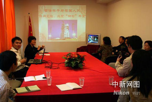 為了能與祖國(guó)共同見(jiàn)證這一歷史性意義的一刻,中國(guó)駐法使館教育處組織留法學(xué)子共同觀看了“神七”發(fā)射的直播節(jié)目。當(dāng)大家通過(guò)屏幕看到“神七”成功問(wèn)天時(shí),所有人都興奮地鼓起了掌。直播結(jié)束后,教育處朱小玉公參主持召開(kāi)了座談會(huì),大家共聚一堂、各抒己見(jiàn)。