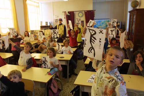 孩子們紛紛亮出自己寫得篆體“鳥”字。(法國《歐洲時報》)