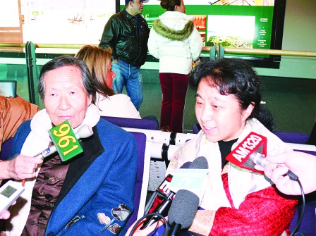 劉面換身穿傳統(tǒng)中式棉襖、藍(lán)色外套和白色圍巾出現(xiàn),雖然經(jīng)過十多小時(shí)的飛行,精神看起來仍然不錯(cuò)。前往接機(jī)的史維會共同主席列國遠(yuǎn),特別送上紅色大圍巾予以御寒。