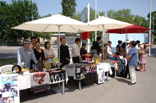 記者在現(xiàn)場看到,許多華僑華人都驅(qū)車感到義賣現(xiàn)場,很多奧地利朋友也對義賣表現(xiàn)了濃厚的興趣。有一位不知名的奧地利朋友用一百歐元購買了一個標價僅為二十歐元的坤包。記者現(xiàn)場采訪了這位朋友。她說,在得知發(fā)生于中國四川的地震災情之后,她一直想尋求一種方式把她對于災區(qū)人民的關(guān)心表達出來,現(xiàn)在有這么一個機會,她感到很開心。不但可以通過這種方式把自己的一份愛心獻給災區(qū),同時還可以買到很多平時市場上根本看不到的具有濃郁的中國風情的物品,她認為絕對是不虛此行。