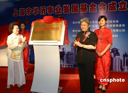 九月十八日晚,“上海市華僑事業(yè)發(fā)展基金會”在上海舉行成立儀式,全國政協(xié)港澳臺僑委員會副主任唐聞生與美國國際合作委員會主席陳香梅女士(左)為該基金會揭牌。與此同時,該基金會網(wǎng)站開通。中新社發(fā) 潘索菲 攝