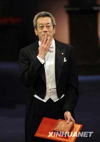 美籍華裔科學(xué)家錢永健領(lǐng)獎后飛吻慶祝。(新華社)