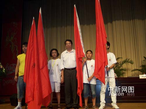 中新網(wǎng)溫州7月12日電(記者李飛云)來(lái)自十三個(gè)國(guó)家的溫州籍華裔青少年“尋根之旅”夏令營(yíng)十二日在浙江溫州開(kāi)營(yíng),中國(guó)國(guó)務(wù)院僑辦副主任許又聲向營(yíng)員授隊(duì)旗,來(lái)自法國(guó)女生張小華在開(kāi)營(yíng)儀式上高呼:“CHINA,很帥!
