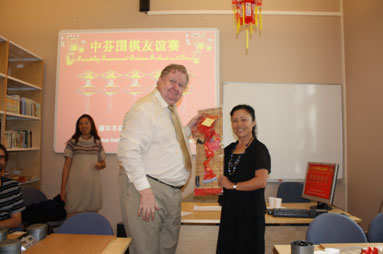 比賽共決出6位優(yōu)勝者,由孔子學(xué)院中方院長李遠(yuǎn)征為獲獎(jiǎng)選手頒獎(jiǎng)——典雅的中國仕女竹掛簾和印有孔子學(xué)院字樣的購物兜。在頒獎(jiǎng)儀式上,李遠(yuǎn)征盛贊此次圍棋比賽對(duì)促進(jìn)中芬友誼的意義,并希望芬蘭人民通過孔子學(xué)院的活動(dòng)和教學(xué)更多了解中國。