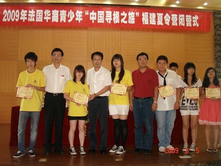 8月5日,2009年法國(guó)華裔青少年“中國(guó)尋根之旅”福建營(yíng)在廈門集美大學(xué)閉營(yíng)。閉營(yíng)儀式上,法華裔青少年們?cè)诰臏?zhǔn)備的匯報(bào)演出中盡顯才藝,將學(xué)習(xí)成果進(jìn)行了精彩展示,還開心地領(lǐng)取到了結(jié)業(yè)證書。