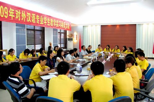 中新網(wǎng)10月10日電 據(jù)華僑大學(xué)華文學(xué)院網(wǎng)站消息,10月9日下午,華僑大學(xué)2009年對外漢語專業(yè)學(xué)生赴泰國參加“中華文化大樂園”教學(xué)實習(xí)動員會舉行。華大華文學(xué)院副院長陳旋波、副書記張燈、副院長李曉潔以及5位部門領(lǐng)導(dǎo)和24名對外漢語專業(yè)學(xué)生參加大會。