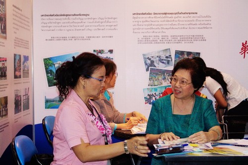 駐泰國(guó)代表處精心布置的展位醒目、美觀,電視播放的華僑大學(xué)美麗的校園畫(huà)面吸引了許多參觀者駐足觀看。同時(shí)代表處每天還安排校友及學(xué)校在泰國(guó)的教師志愿者等協(xié)助工作,他們通過(guò)自身學(xué)習(xí)經(jīng)歷,以中、泰、英三種語(yǔ)言,詳細(xì)介紹華僑大學(xué)和華文學(xué)院的情況。
