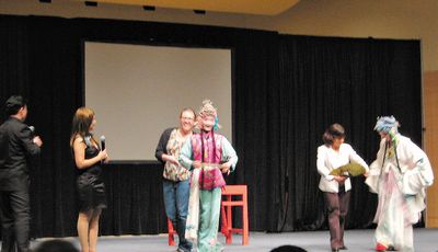 而為了讓觀眾進(jìn)一步體會(huì)京劇精華,每片段演出之間,并邀請(qǐng)觀眾上臺(tái)“學(xué)藝”。當(dāng)天觀眾席上亦有許多戲劇及表演科系學(xué)生,爭(zhēng)取上臺(tái)學(xué)藝的機(jī)會(huì),揣摩劇中人物的演出。