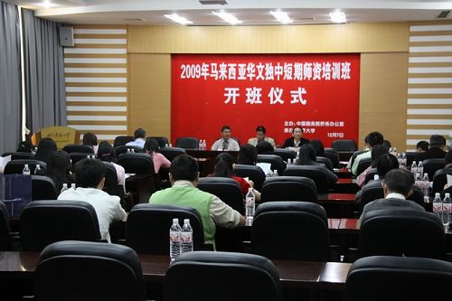 中新網12月7日電 據華僑大學網站消息,由中國國務院僑務辦公室主辦,華僑大學承辦的2009年馬來西亞華文獨中短期師資培訓班12月7日上午在陳嘉庚紀念堂會議室舉行開班儀式。華僑大學副校長吳季懷出席開班式。