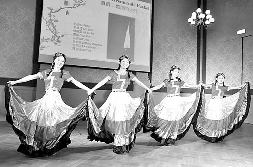 據(jù)悉,維也納大學(xué)孔子學(xué)院成立3年來,已舉辦了300多場(chǎng)各類活動(dòng)。圖為中國大學(xué)生在表演舞蹈《燃燒的火把》。(方祥生 攝)