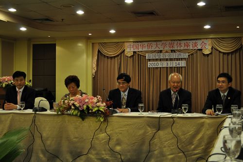 14日上午,代表團在曼谷舉行泰國華文媒體見面會。華僑大學(xué)副校長張禹東向泰國華文媒體介紹了華僑大學(xué)的辦學(xué)情況,特別是在泰國開展的華文教育情況和建校50周年慶典活動的籌備情況,向泰國華文媒體對該校的長期支持表示感謝,期望雙方今后繼續(xù)加強聯(lián)系合作,進一步提升華僑大學(xué)在泰國的社會影響力。與會人員就如何在泰國華文媒體乃至泰文主流媒體建立密切有效的合作方式加強對華僑大學(xué)的宣傳、繼續(xù)組建泰國媒體訪問團來校訪問、校慶報道等問題進行了富有建設(shè)性的交流,就有關(guān)問題達成共識。