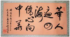 著名書法藝術家方向雄日前為華僑大學五十周年校慶題詞:“華人遍四!S心向中華”
