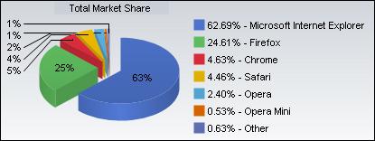 盡管如此,在過(guò)去的6個(gè)月中,IE市場(chǎng)份額幾乎每個(gè)月都要下降一個(gè)百分點(diǎn)。Net Applications預(yù)計(jì),到2010年年中,IE份額可能跌至50%。