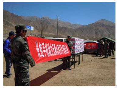 長虹手機首批災(zāi)后重建物資抵達玉樹----捐贈給成都軍區(qū)防化部隊手中