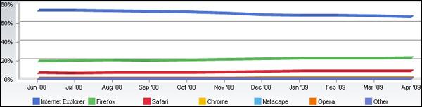 過去12個(gè)月,IE市場份額平均每月下降0.7%。如果按照該趨勢發(fā)展,2011年5月,IE有望跌破50%。