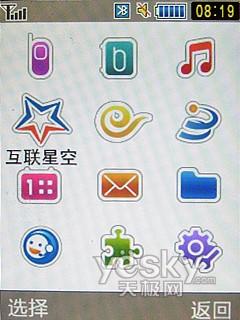 在界面方面,該機延續(xù)三星傳統(tǒng)風(fēng)格,12宮格的主菜單平鋪出主要功能,待機桌面可以顯示或關(guān)閉鐘表和日歷,五維導(dǎo)航鍵支持快捷操作。
