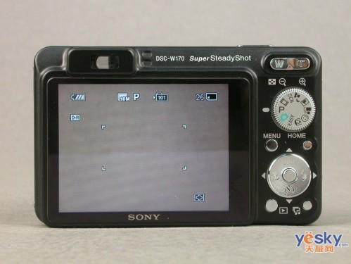 在機身的背面,它還采用了一個2.7英寸大小的液晶屏幕,有效像素為23萬,顯示效果不錯。此外,W170還采用了BIONZ影像處理系統(tǒng),有效提高相機的反應速度。