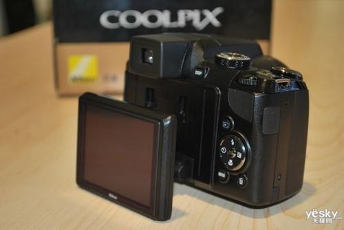 在外觀方面并沒有太大改進(jìn),在機(jī)身背面采用了一塊3英寸的可以旋轉(zhuǎn)LCD屏幕,可以方便從不同角度取景。從機(jī)身前面看,P90的手柄多少能找出尼康單反手柄的影子,手柄比較寬厚,握持起來手感不錯。由于采用了24倍光學(xué)變焦,P90的鏡頭伸出長度要很長,配合黑色的機(jī)身,整體看起來相當(dāng)專業(yè)。