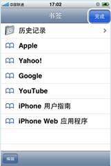 ⑵首次打開Safari瀏覽器時,系統(tǒng)會彈出書簽菜單,如不想訪問蘋果推薦訪問的網(wǎng)站,可直接點擊右上角的“完成”按鈕進入空白頁面(如想查看推薦網(wǎng)站,直接單擊相應的書簽即可)