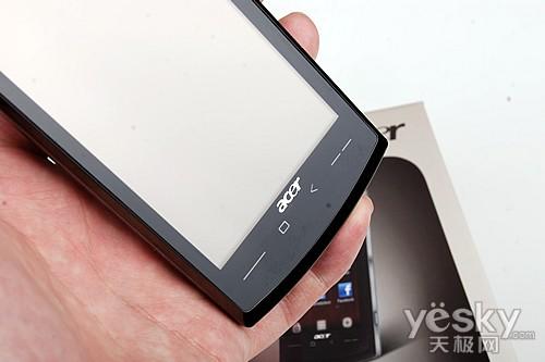 外觀上,ACER neotouch采用了傳統(tǒng)的直板造型設(shè)計,配備了一塊3.8英寸WVGA的電阻式觸摸屏幕,分辨率達到了480x800像素,顯示效果清晰細膩。neotouch擁有117.5x63.5x12.85 毫米的三圍體積,重量131.5克,整機設(shè)計簡約時尚,握持手感非常不錯。
