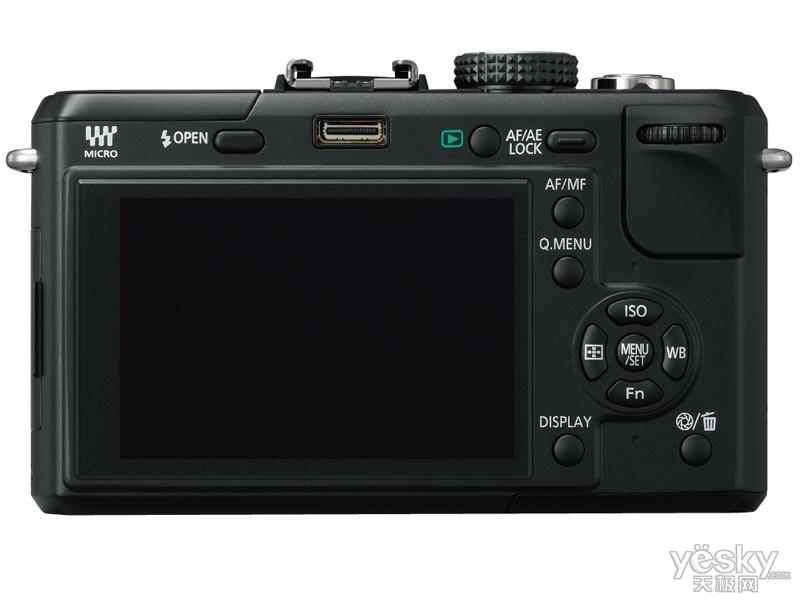 該機背后是一塊3英寸LCD,其顯示精度也要高于E-P1,約具有46萬像素(E-P1的LCD為23萬像素)。GF1的三圍尺寸和E-P1區(qū)別不大(119×36.3×71mm),但重量卻比E-P1輕了50g,只有285g。另外,GF1的電池型號是與G1及GH1相同的DMW-BLB13型。
