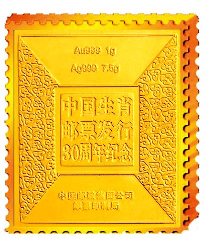 2010年是中國首輪12生肖郵票發(fā)行30周年紀念,近日,由中國郵政集團公司郵票印制局監(jiān)制的第一套“首輪12生肖郵票金磚”正式發(fā)行。此舉結束了“生肖郵票”和“賀歲金磚”每年都只能各自獨立發(fā)行一枚的歷史,一舉實現(xiàn)了擁有一套生肖藏品,就能同時擁有二個生肖大全套的夢想。